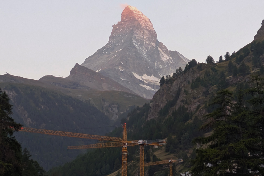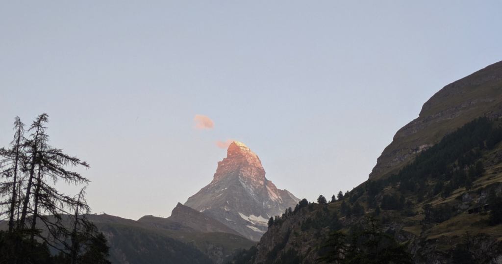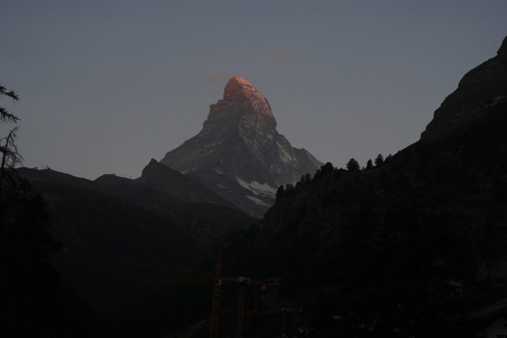 次の日の朝は快晴で朝焼けマッターホルンを拝むことができました。