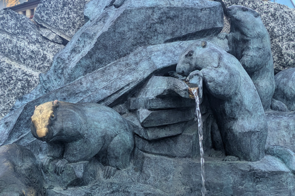 なんでも、左下のマーモット頭をなでると幸せになれるのだとか!